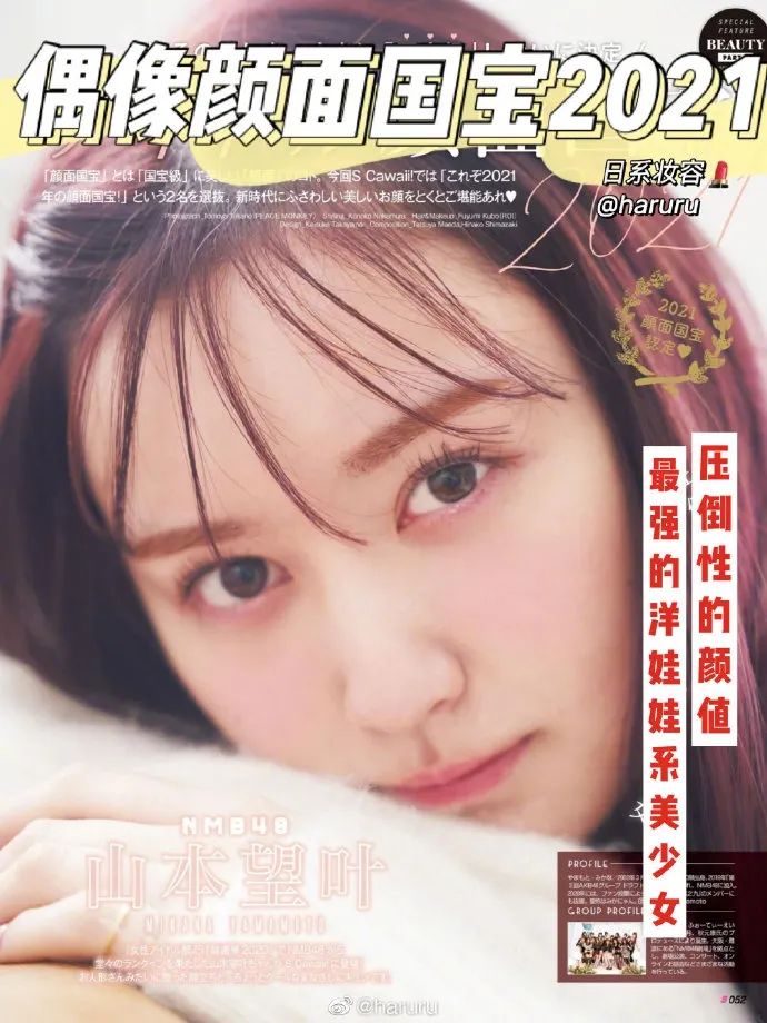 山本望叶外形清纯可爱,符合亚洲人对美少女的定义,但被赞为“偶像颜面国宝2021”或许是因日本杂志在形容词上太过夸张!