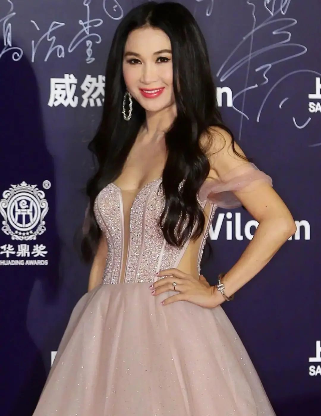 “不老女神”之称的温碧霞,最近挺活跃的,频繁现身于各种红毯。当晚温碧霞身着一件闪亮的棕色露肩长裙,看得出她的身材还是很不错的。