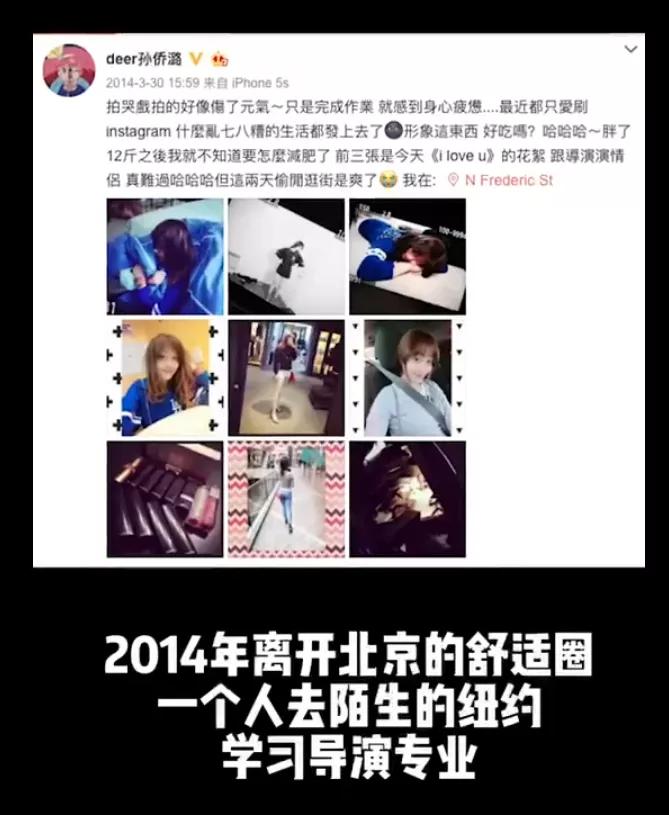 2014年,孙侨潞离开北京的舒适区,一个人去陌生的纽约,学习导演专业。