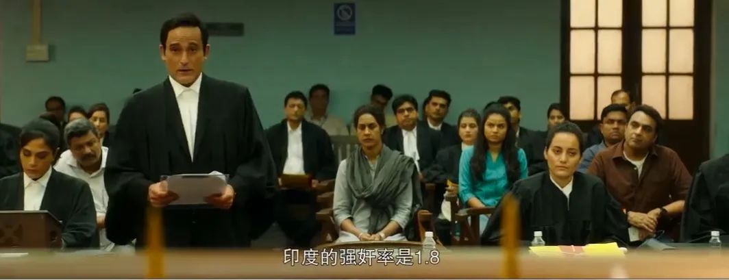 当女主控官激情澎湃高喊完“印度是强奸之国,要严惩凶手”后,辩护律师萨鲁加先用专业数据,强调了“印度远低于世界的强奸比率”定罪率很高,打击了对方先声夺人的气势。