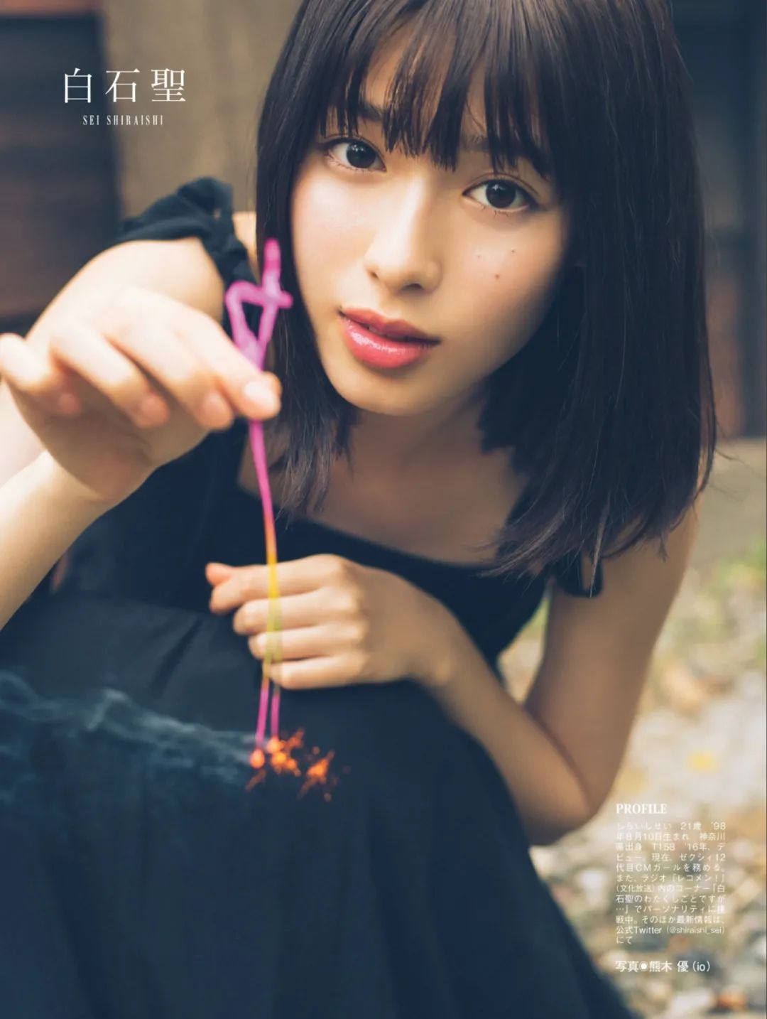 白石圣,1998年8月10日出生于日本神奈川县。2016年,她参演电视剧《AKB恋爱夜~恋工场》,从而作为演员出道。后来她参演的电视剧《绝对正义》走红,她凭借该剧获得第15届电视剧信心奖新人奖。