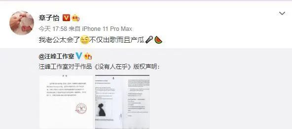 随后章子怡转发了上述声明,8字回复超好笑“我老公太会了,不仅出歌而且产瓜”!