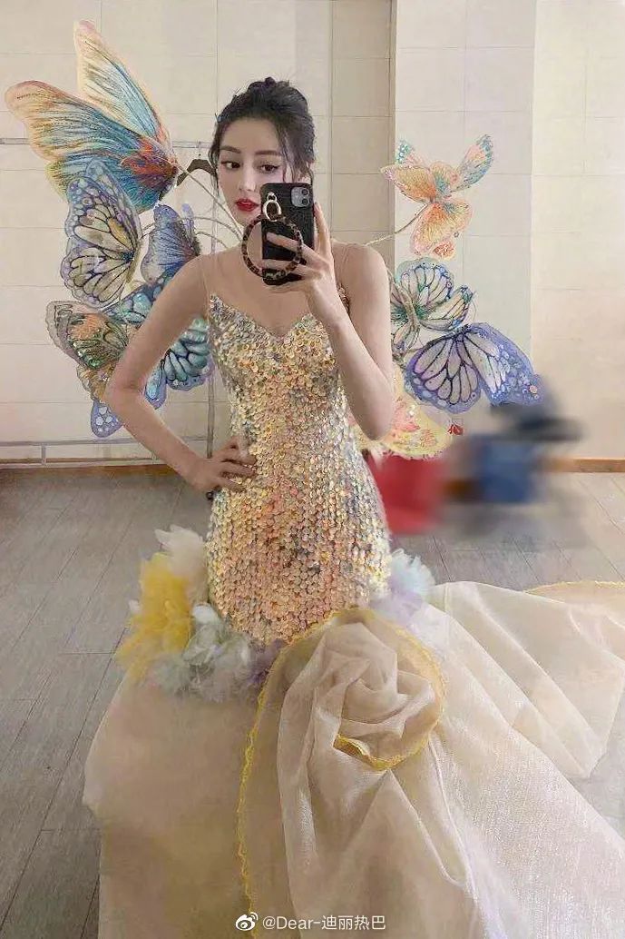 迪丽热巴穿着鱼鳞装长裙自拍,她露出深V事业线和白嫩胳膊,肌肤如雪般亮白,绝对美得让人移不开眼!