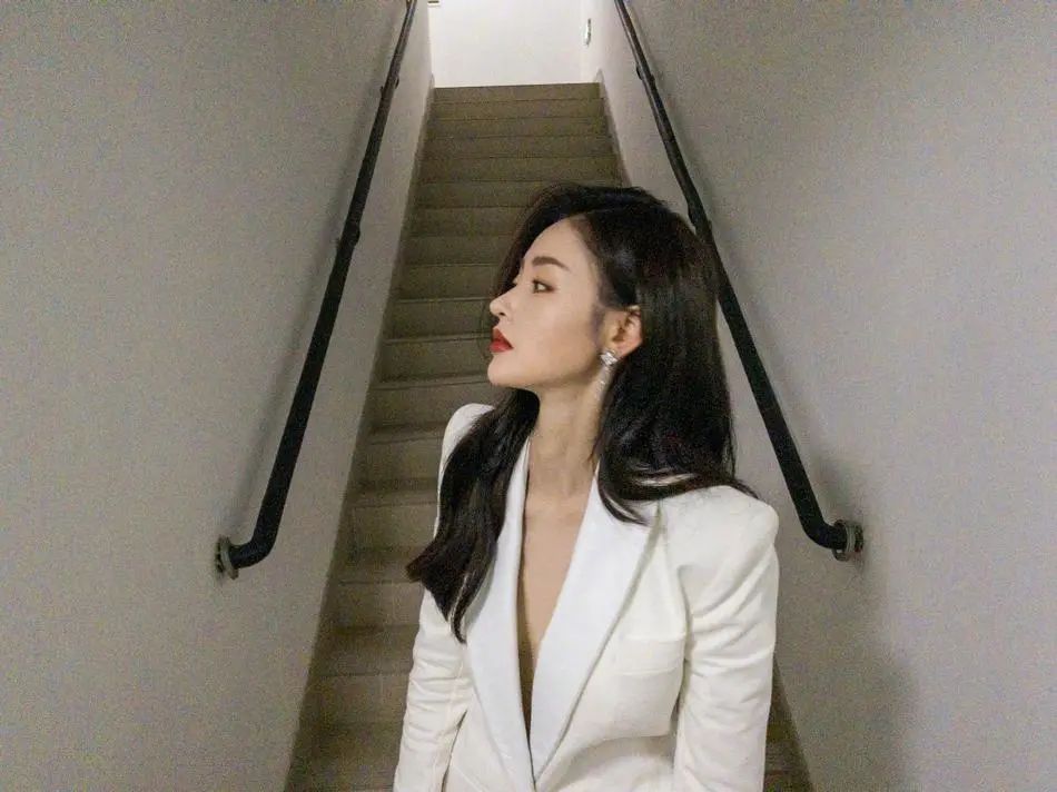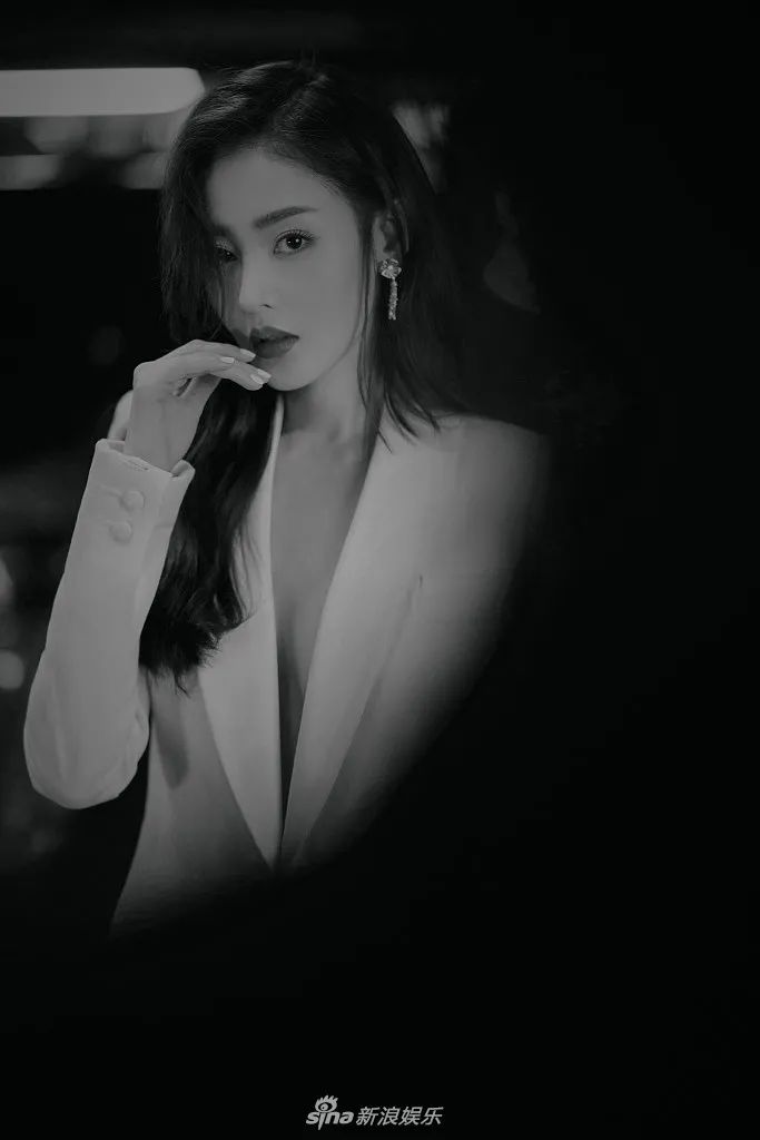 虽然是黑白写真,但张天爱穿着真空的西装,既性感妩媚,又酷飒干练,她真不愧一代女神,个人魅力十足。