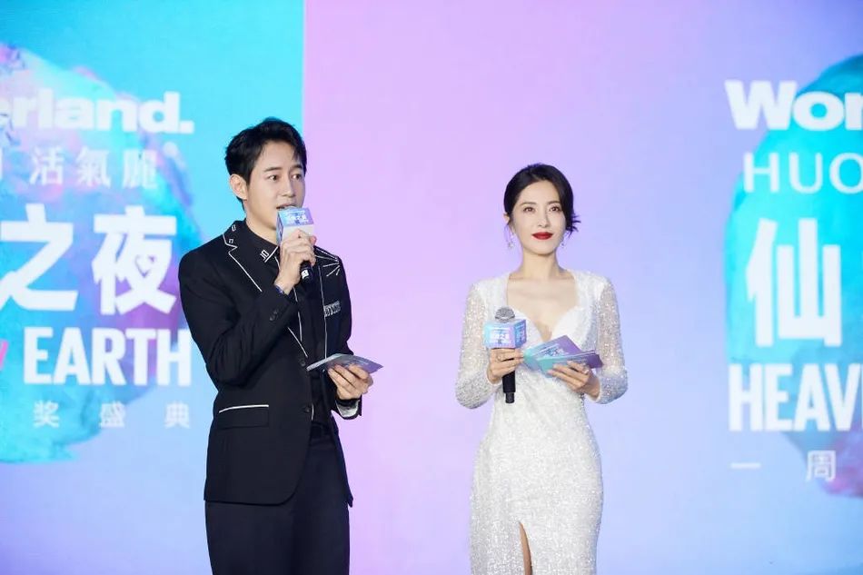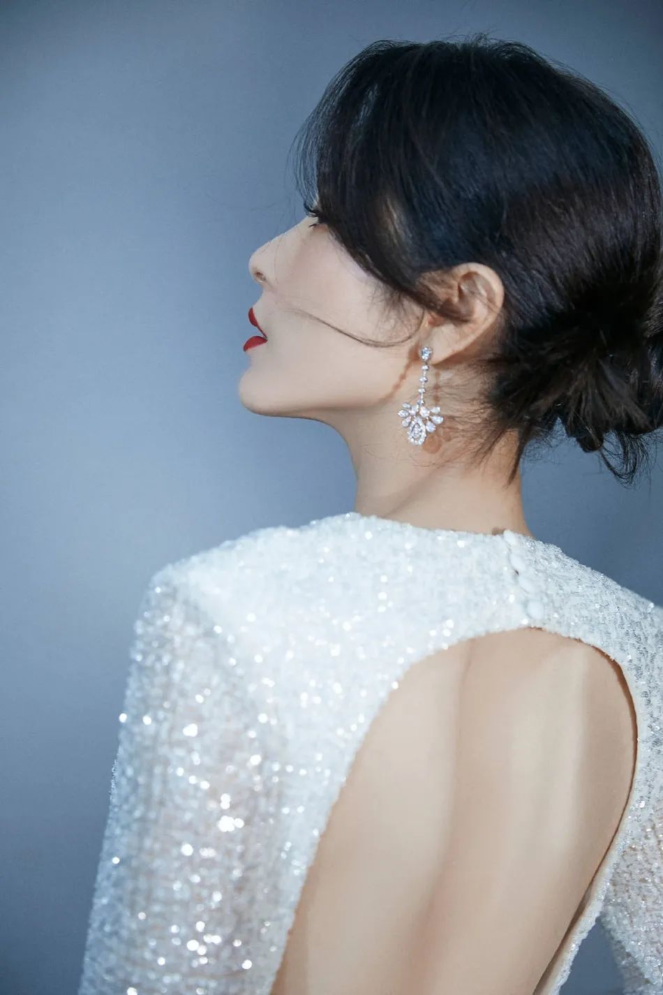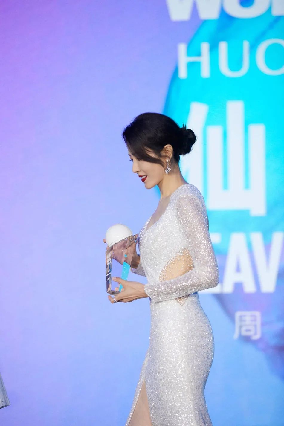 曾黎穿着一袭深V亮片白裙,她拿着话筒当主持人,依旧很性感惊艳。毕竟这位美女演员的颜值和气质都特别好,只要往那里一站,就美得让人窒息!