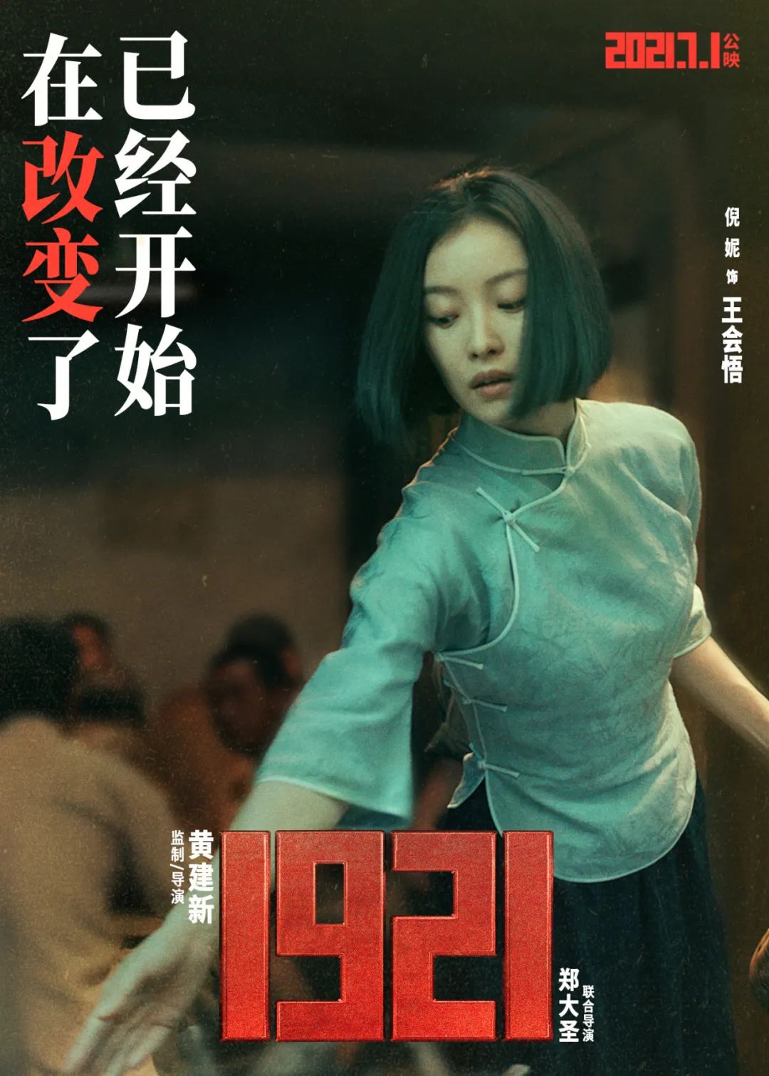 倪妮的颜值和表演一直都是很高的,她也是本片中戏份最多、形象最美的女演员,代表着有知识有理想的进步女性,为党组织的成立、新中国的建立,也积极地贡献出自己的一份力量。
