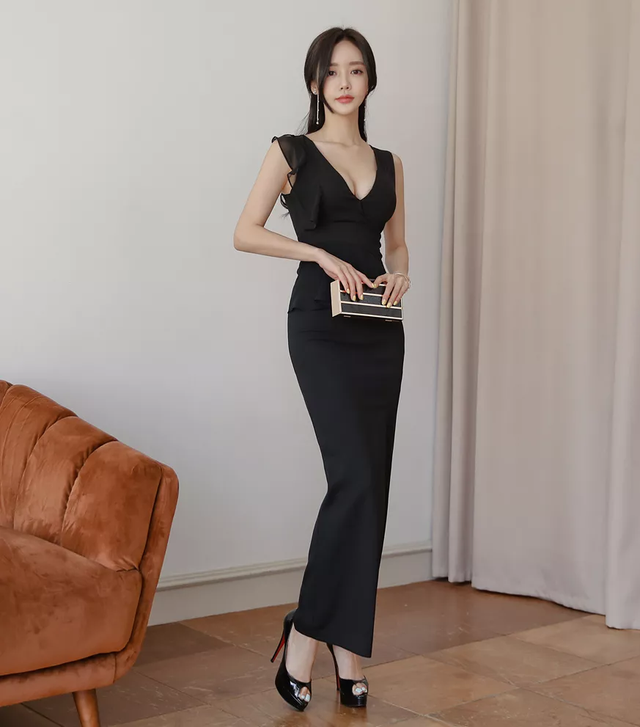 孙允珠穿黑色深V长裙太性感!细腰长腿魔鬼身材撩人
