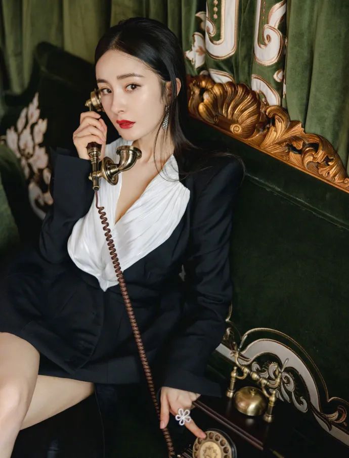 杨幂穿着镂空短裙,侧躺在椅子上,脸上的表情很懒散,一双大美腿翘在桌上很妩媚,这样的美女实在太性感撩人了!
