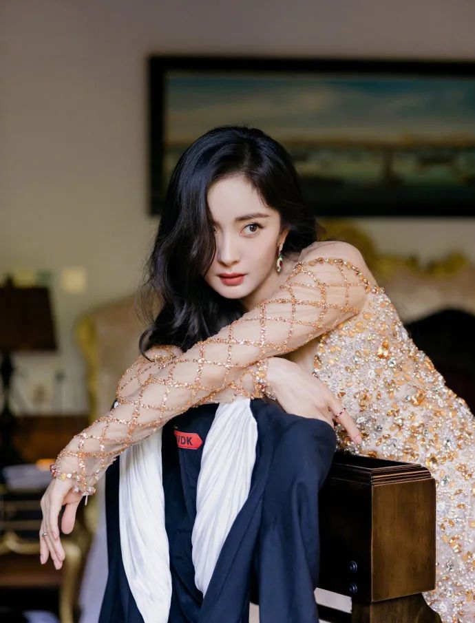 杨幂换上西装公主蓬蓬裙,她俏脸清纯,衣着优雅时髦,一双筷子般的大美腿交叉着,还是显得很靓丽多姿的。