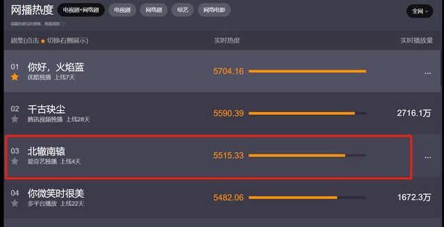 目前,《北辙南辕》靠着明星扎堆的女性剧,虽然仅仅上线三天,但是这热度却挤进了前三名。但是,龚俊和张慧雯的新剧《你好,火焰蓝》、周冬雨和许凯《千古》,则排名更高。