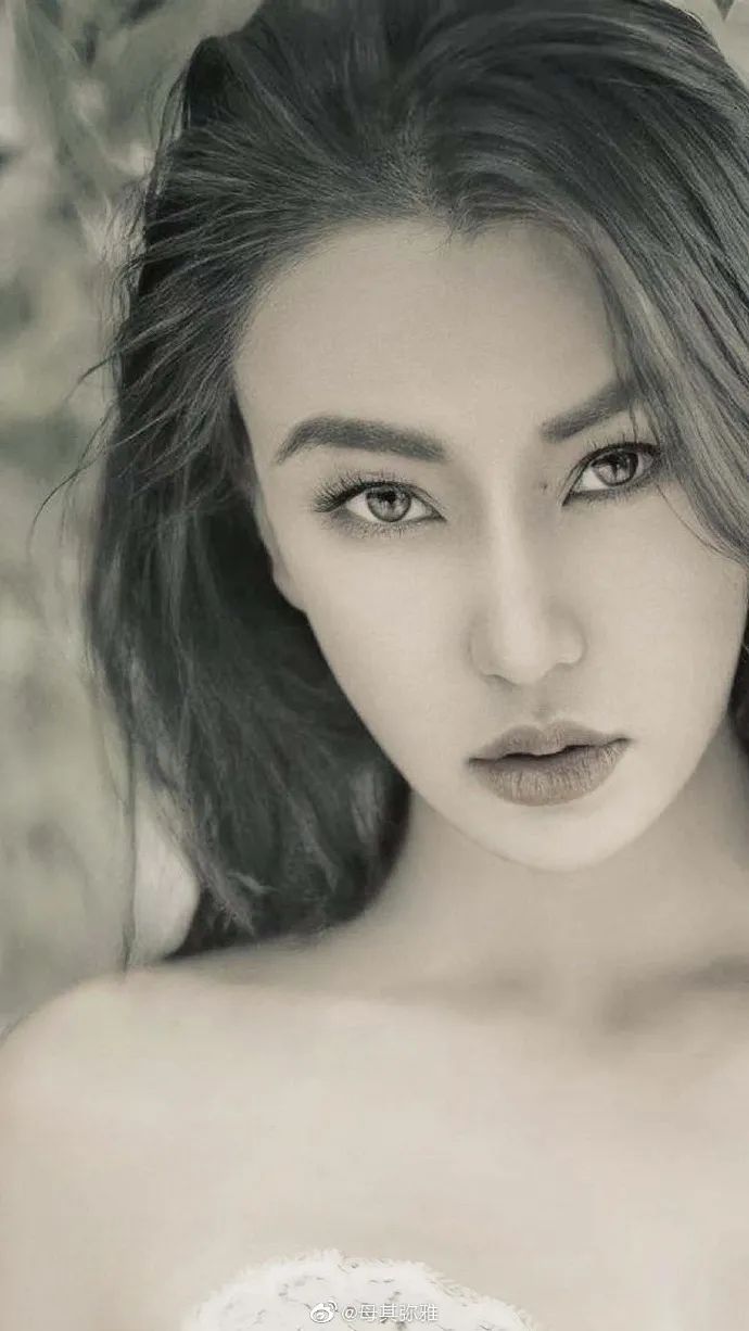 母其弥雅穿着一袭黑白斑点的吊带内衣,搭配黑白条纹长裙,她俏脸妩媚,秀眸灵动,秀眉大嘴,耳戴蓝宝石首饰,双手撩过头顶,大秀自己的事业线和香肩,肌肤白皙娇嫩,绝对性感撩人。