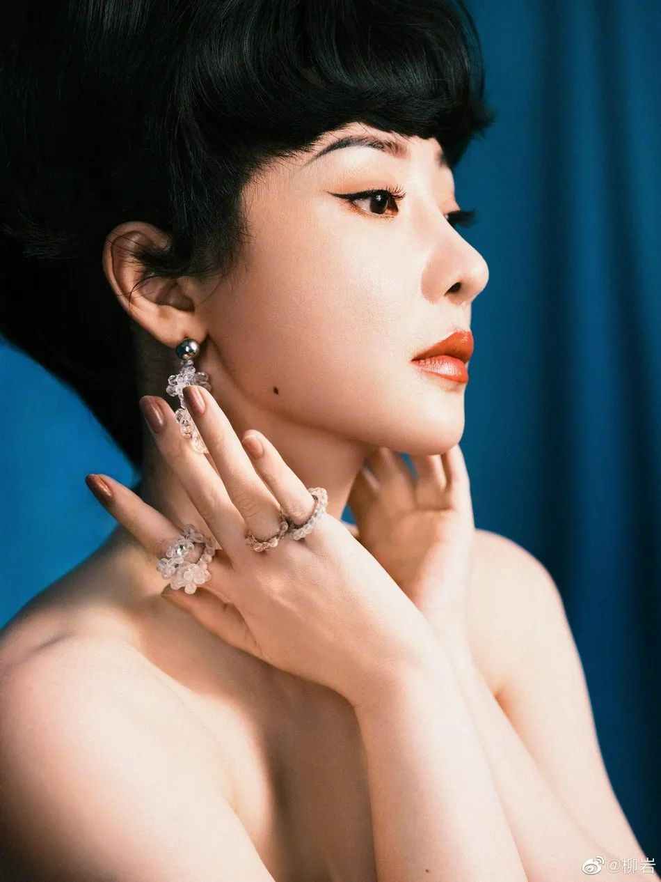 柳岩这张特写美图,她俏脸妩媚靓丽,烈焰红唇很撩人,双手做出一个托着下巴的姿势,大秀白皙的香肩,肌肤娇嫩如雪,太性感撩人了!