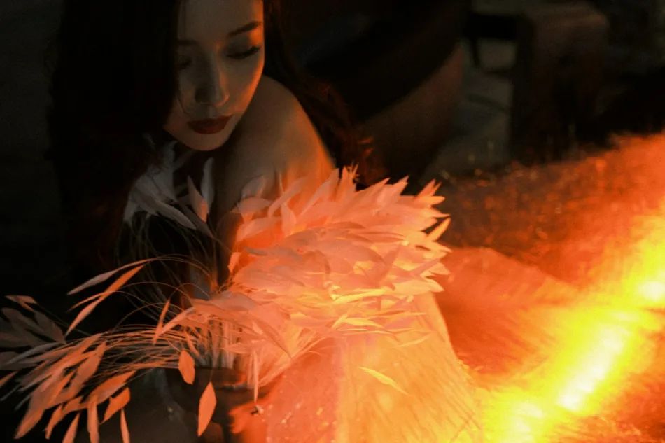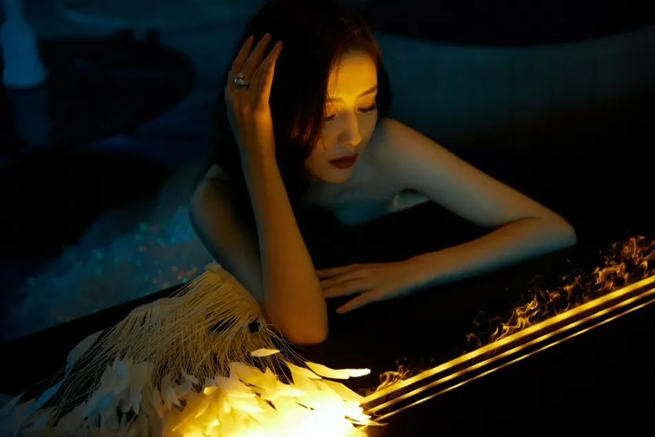 佟丽娅身穿被色羽毛裙,大秀自己的香肩和美腿,太性感诱人了。