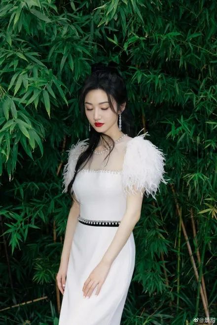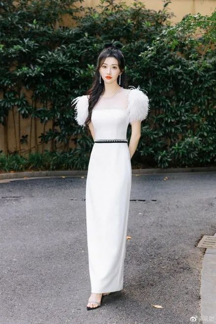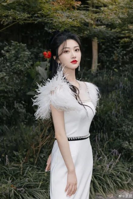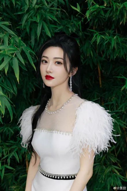 景甜身穿白色羽毛珍珠高腰长裙,俏脸清丽脱俗,秀眸明媚灵动,烈焰红唇很撩人,这位女星肤白貌美,还是很有魅力的。