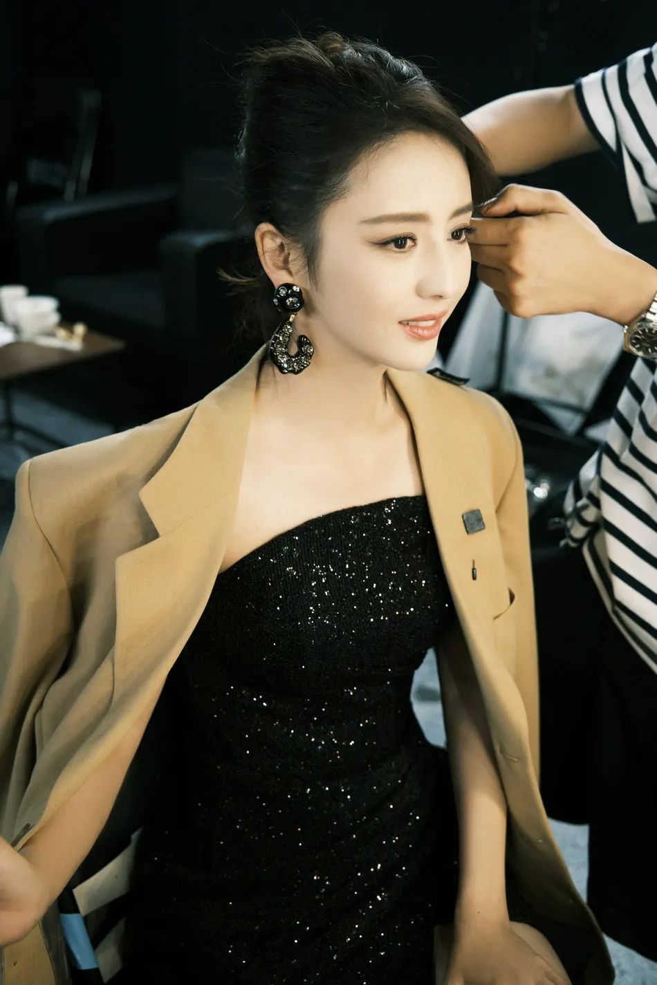 佟丽娅身着一袭黑色抹胸长裙,她俏脸妩媚,秀眸灵动,锁骨优越,乌黑长发,烈焰红唇,大秀白皙的香肩和胳膊,太性感妩媚了!