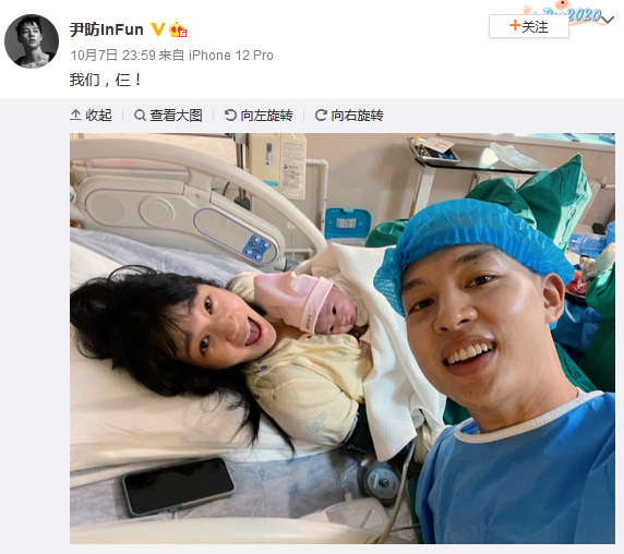 著名男演员尹昉突然在微博发“我们,三”,曝光自己妻子和孩子的照片,看来他们一家三口,还是很幸福美满的。