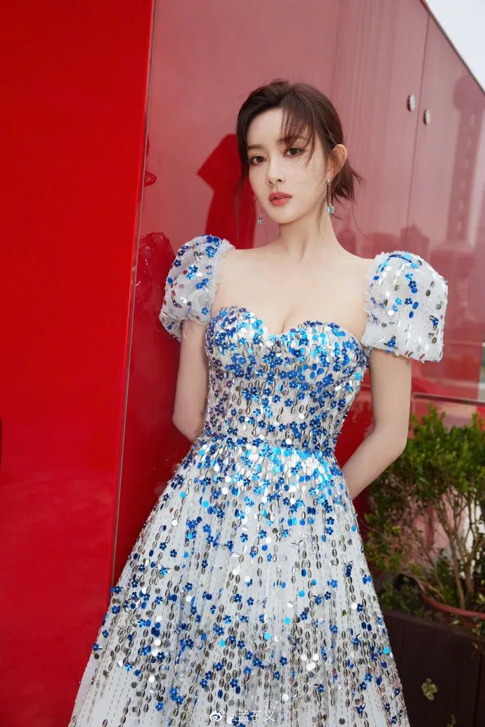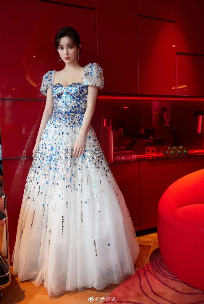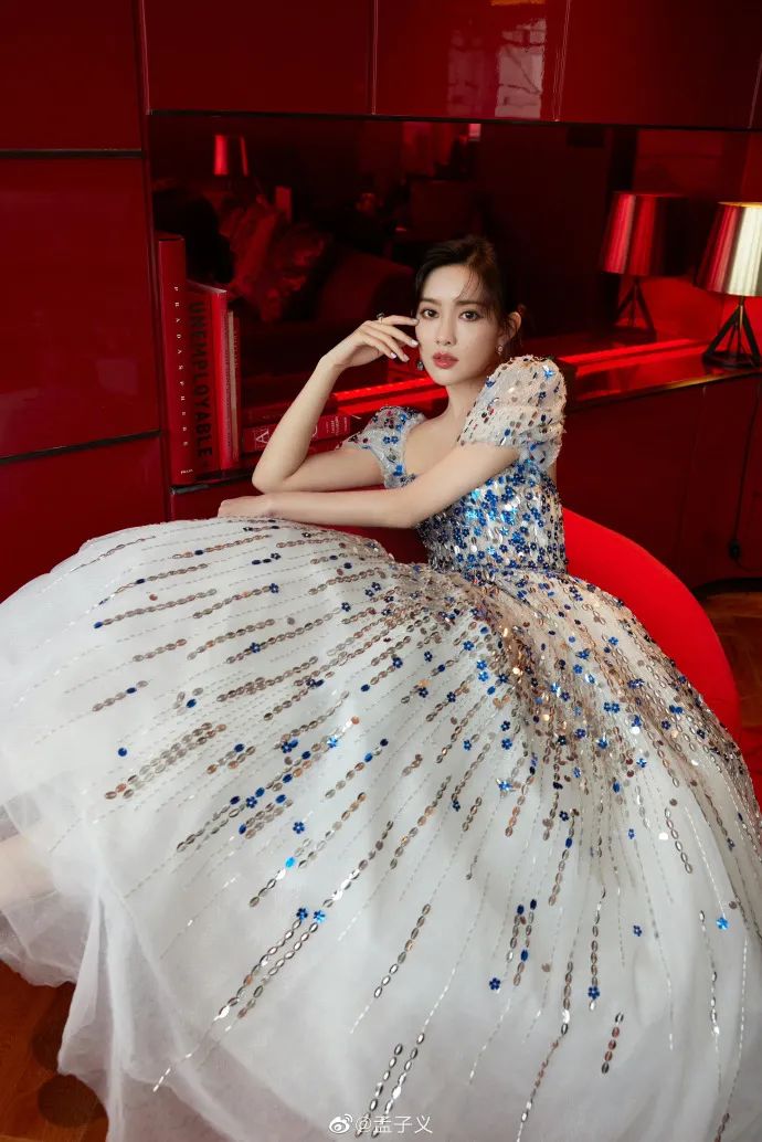 孟子义穿着一袭镶嵌各种颜色亮片的白色抹胸长裙,她俏脸清丽脱俗,秀眸明亮如水,烈焰红唇很撩人,她单手扶着自己俏脸,肌肤白皙如雪,美得不可方物。