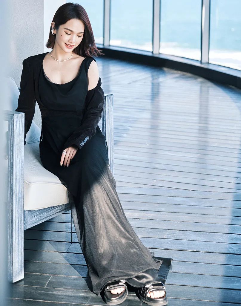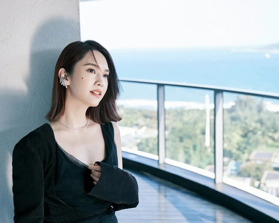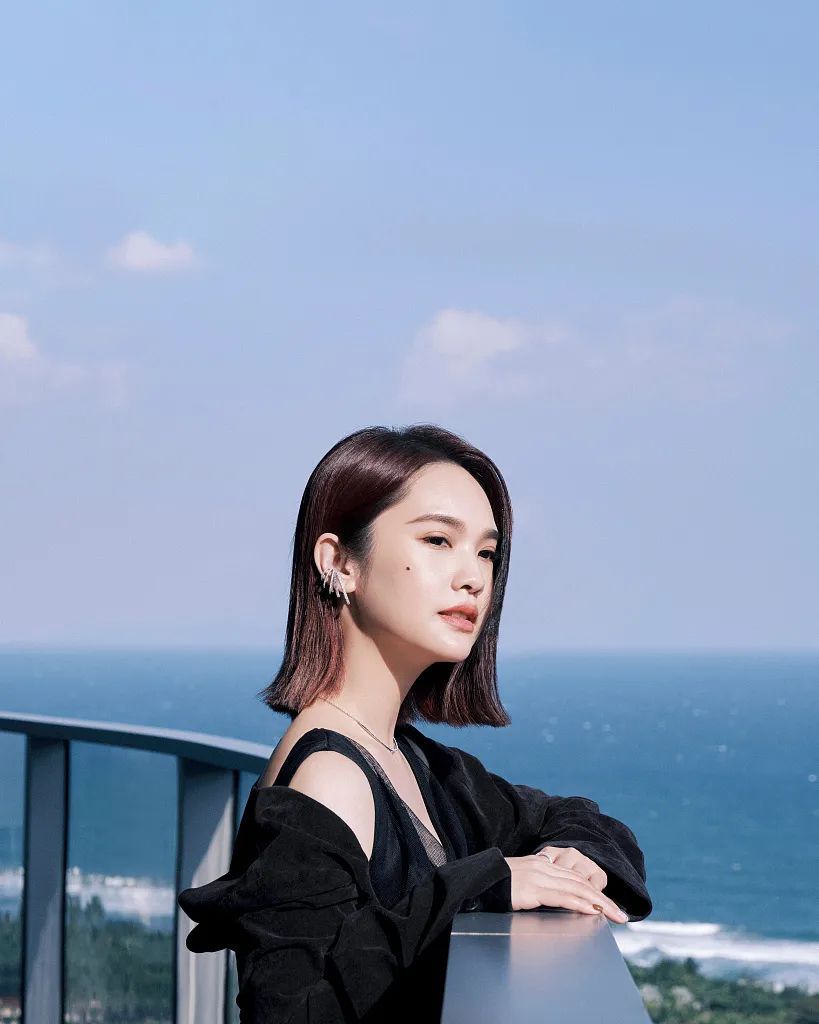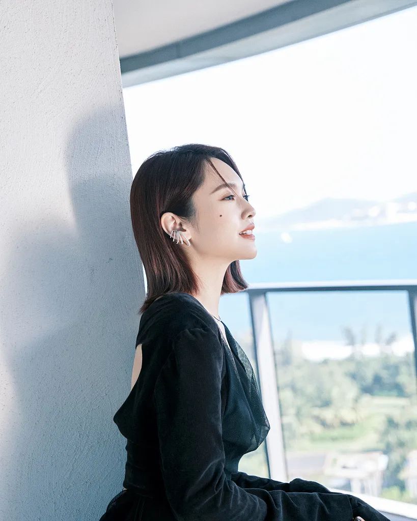 杨丞琳身穿一袭黑裙,她俏脸清丽脱俗,站在窗台边上,微微一笑很倾城,美得不可方物。