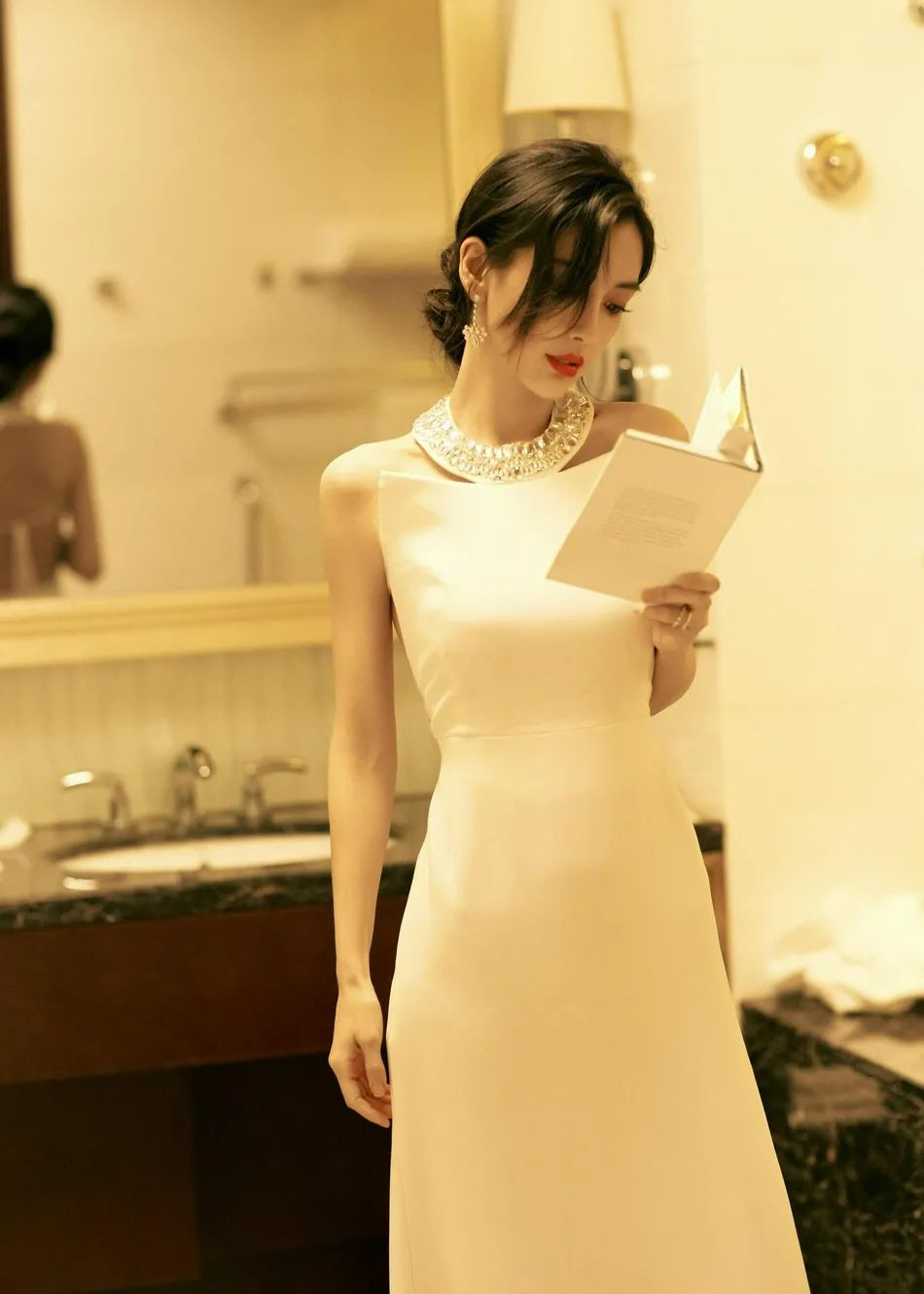 angelababy穿着一袭纯白露背长裙,她背身回眸惊鸿一瞥,精致的五官,明亮的演技,曼妙的身材曲线,绝对性感靓丽。