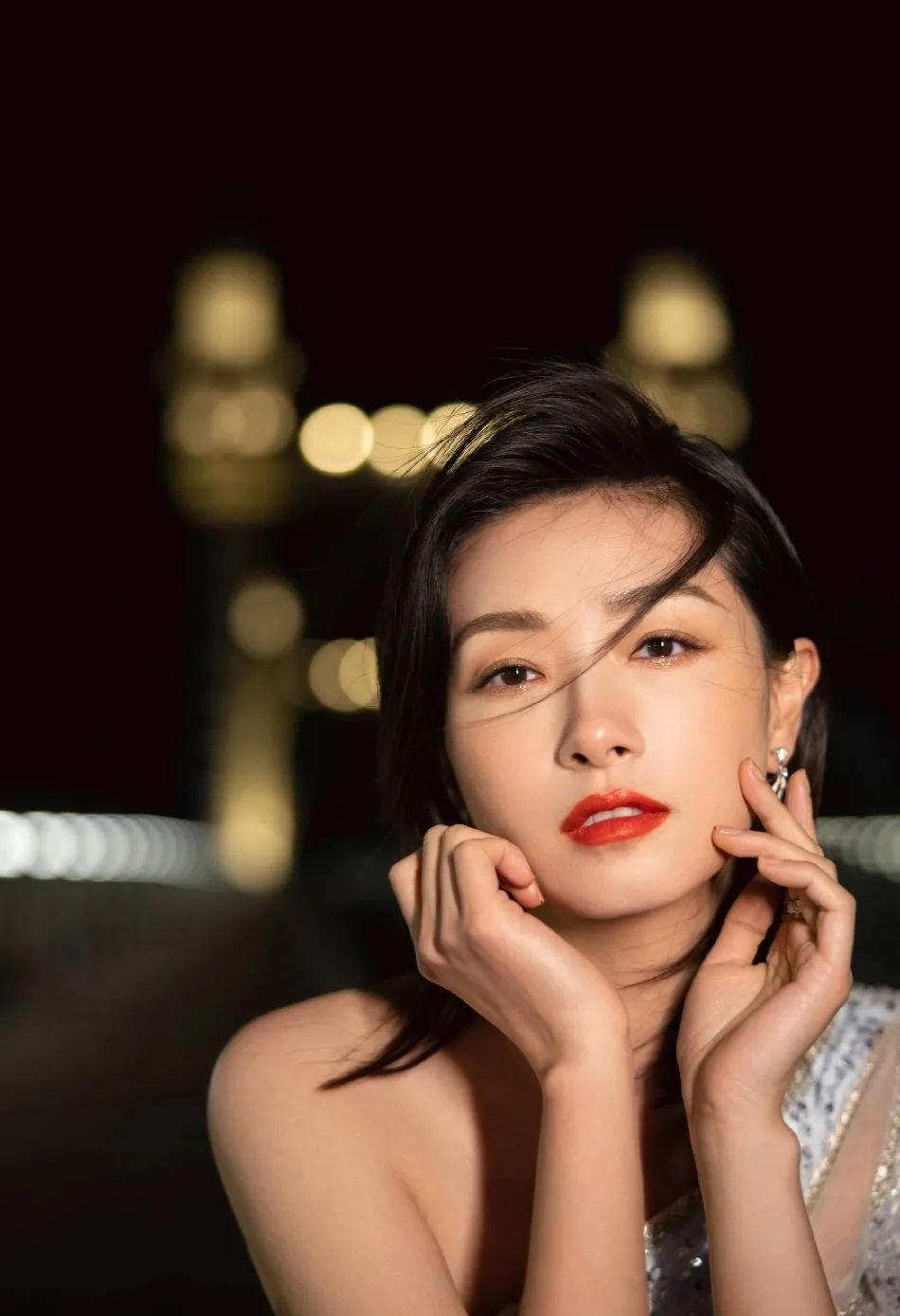 万茜穿着露肩衣服很妩媚,盈盈美眸,烈焰红唇,柔柔长发,白皙的肌肤,都让人心动。
