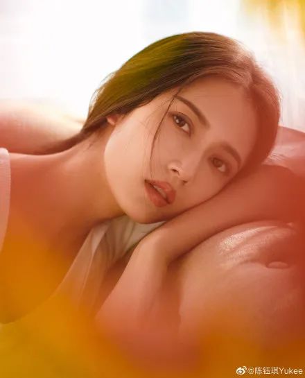 陈钰琪穿着一袭白色吊带衣裳,她斜靠在沙发上,单臂托着自己俏脸,秀眸明亮妩媚,唇红齿白,秀发飘逸,这样的大美女谁能不爱?