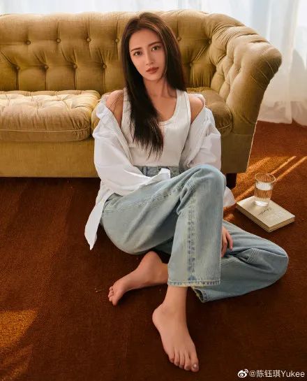 最近,90后美女明星陈钰琪晒出自己的一组美图,魅力十足。陈钰琪穿着一袭白色上衣,搭配蓝色牛仔裤,俏脸清丽,秀眸明亮,大秀白皙的赤足,美得让人心动。