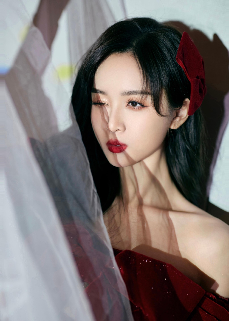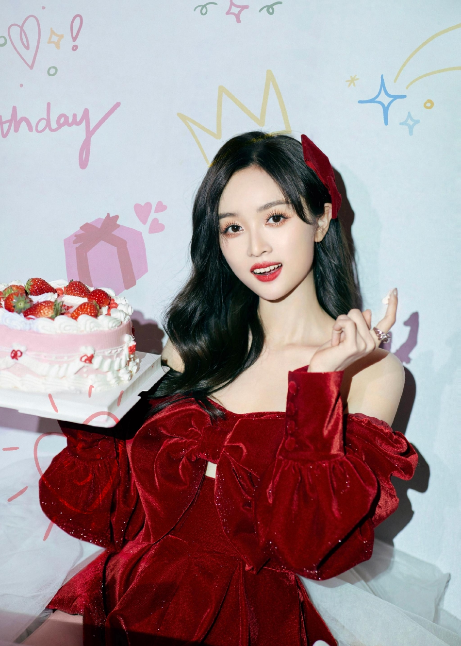 1月26日,90后美女明星吴宣仪27岁生日写真释出,美艳动人。照片中,吴宣仪身穿红色丝绒一字肩短裙,头戴红色丝绒蝴蝶结,俏皮又不失优雅。她的一头长卷发披散在肩上,妆容精致,大秀白皙的香肩,魅力不可小觑。