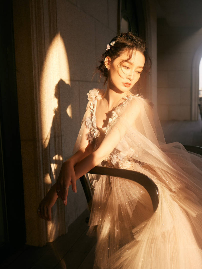 李沁穿着一袭白色长纱,她俏脸清丽,大秀白皙的胳膊,美得让人心动。
