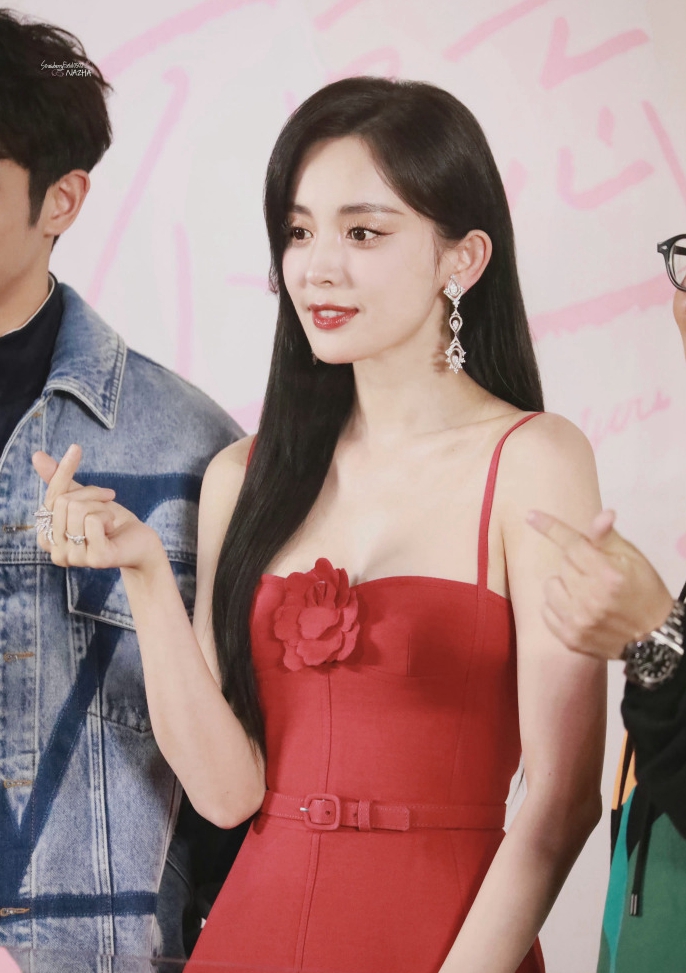 娜扎穿着一袭红裙,乌黑的秀发飘逸,这位美女明艳大气,就是我心中的朱砂痣本人了!
