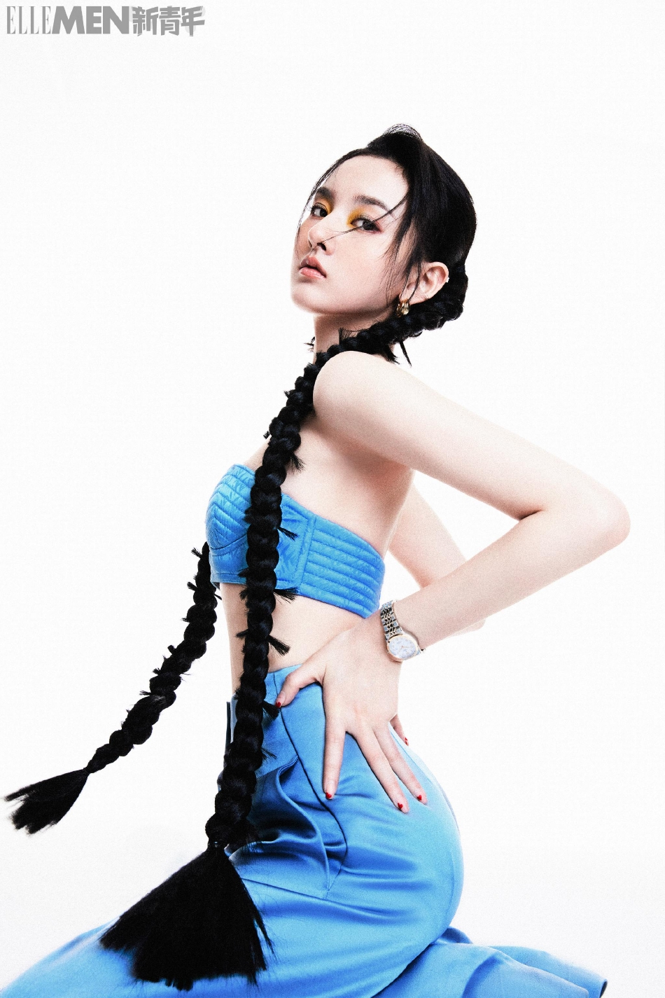 近日,《ELLEMEN新青年》在官方微博释出一组宋祖儿的双马尾造型色彩大片,魅力十足。照片中,宋祖儿梳着两条长长的拳击辫,上身穿着宝蓝色针织衫,下身穿着黑色短裙,脚上穿着粉色袜子,肌肤白皙如雪,酷飒利落,美艳动人。