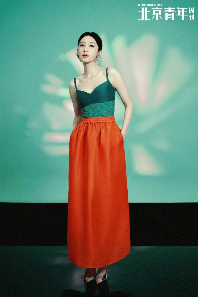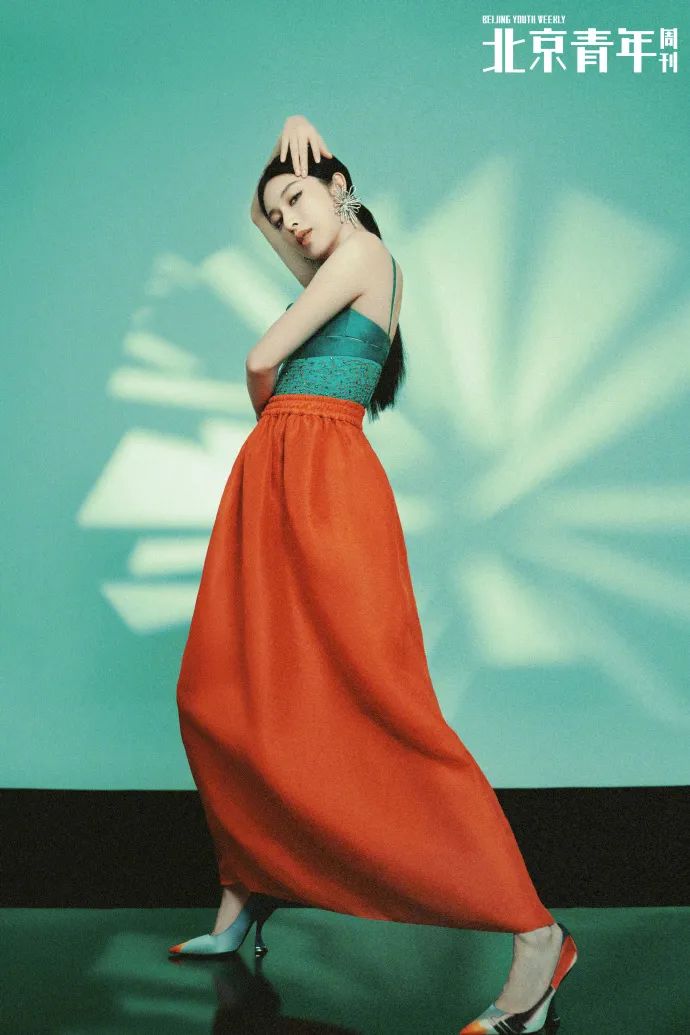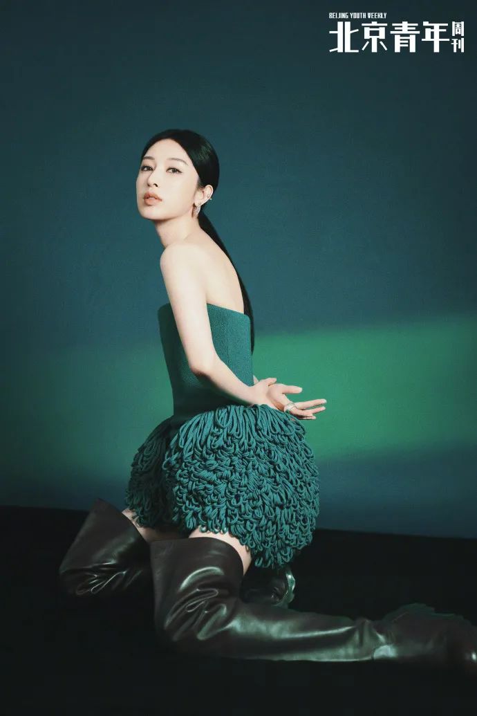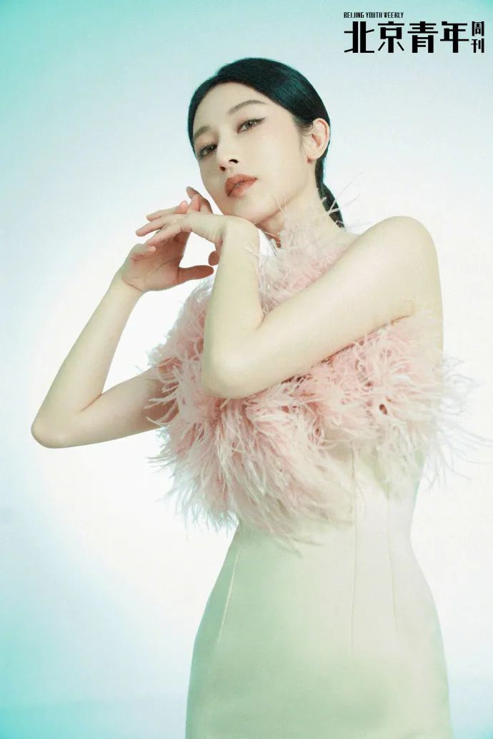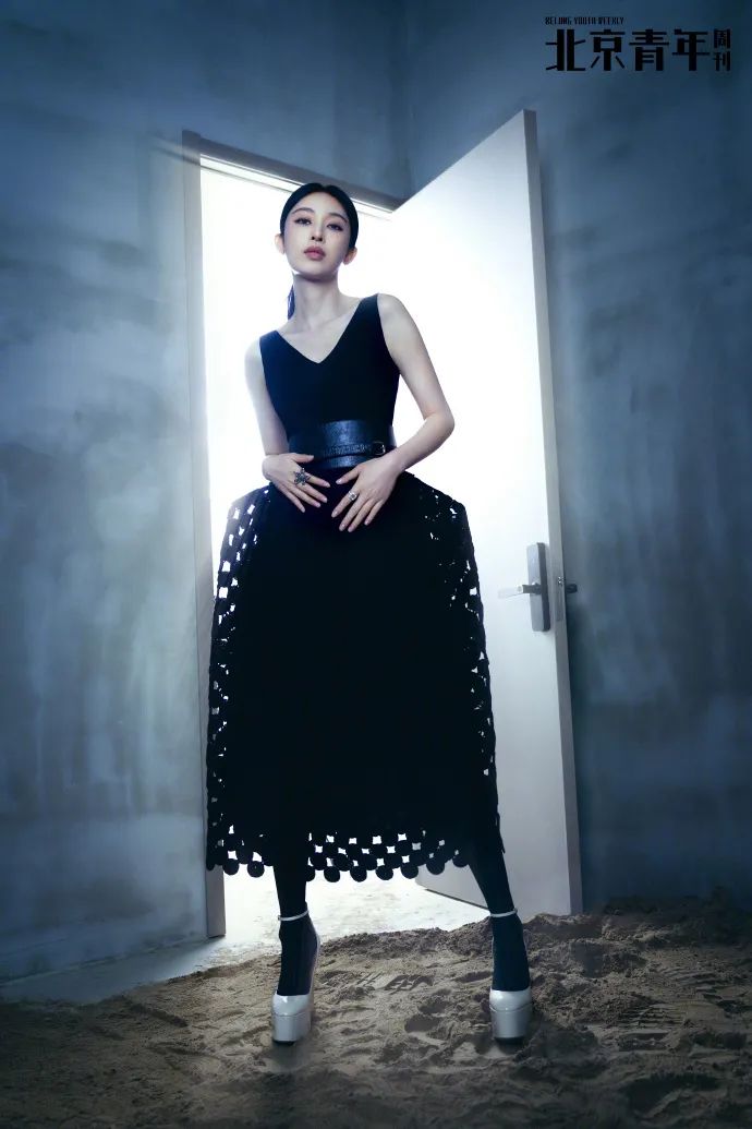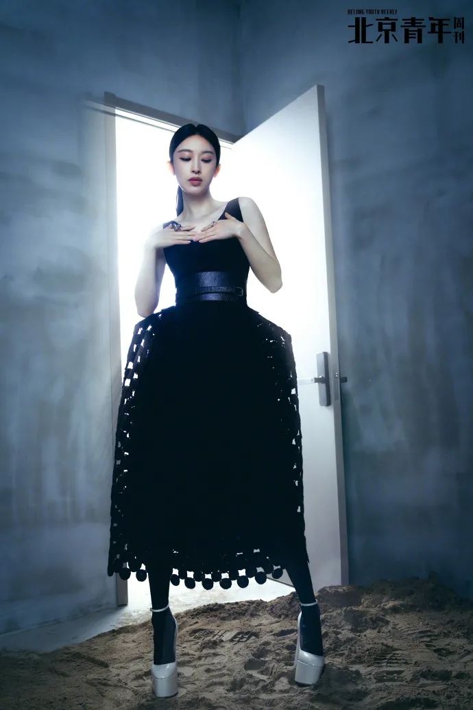 张俪穿着一袭黑色吊带长裙,她俏脸成熟妩媚,双手扶在嘴边,挡着半边脸颊,大秀白皙的胳膊,肌肤娇嫩如雪,美得让人心动。杂志标题醒目写到:“张俪:找准自己的节奏!”