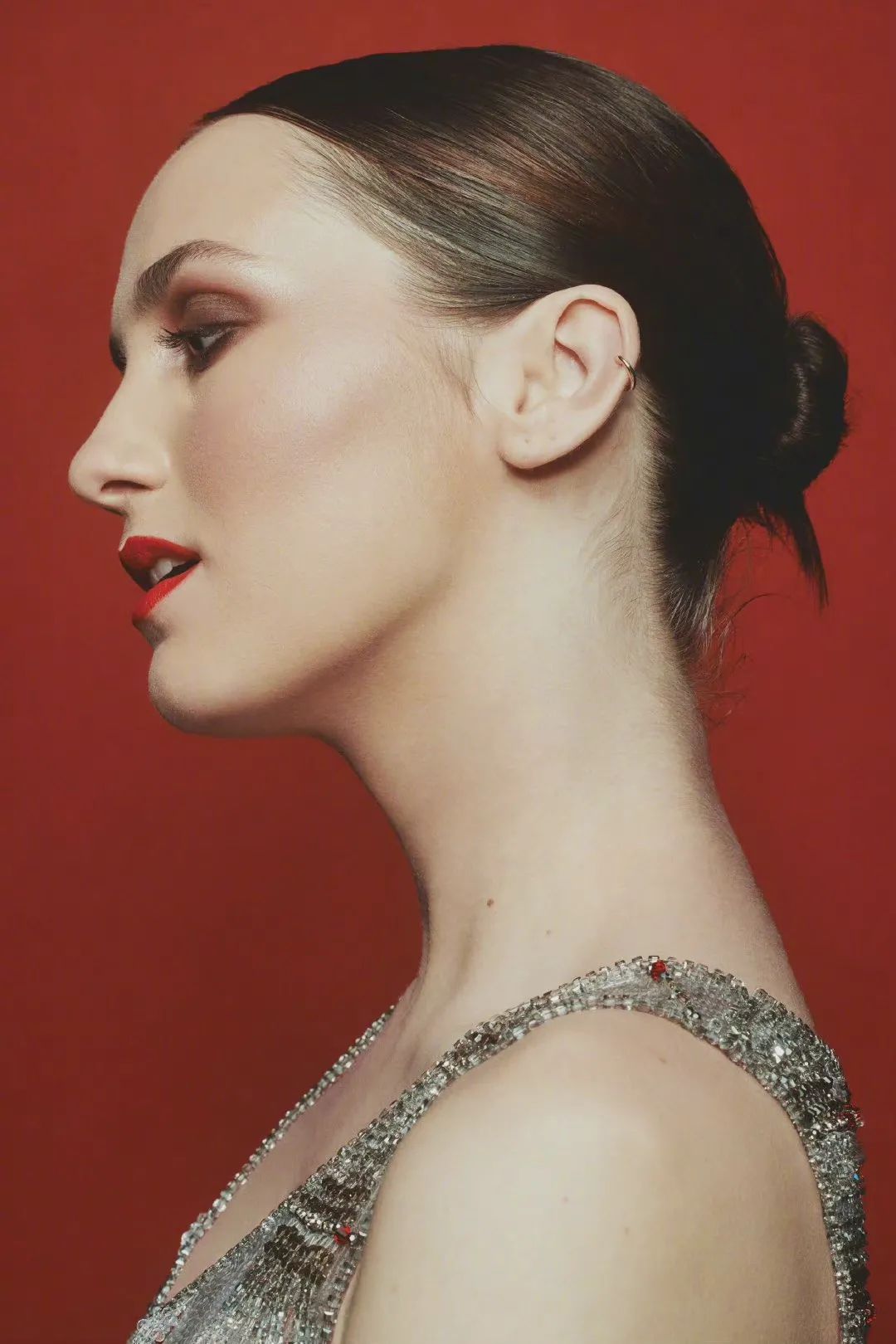 莫德·阿帕图穿着一袭吊带银色长裙,她面容冷峻,肌肤白皙,身材曼妙,美得让人心动。