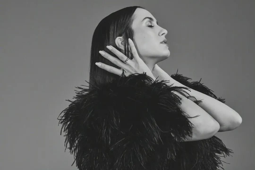 莫德·阿帕图穿着一袭吊带银色长裙,她闭眼凝思很可人,双手叉着小蛮腰,大秀自己魔鬼身材,绝对性感撩人。