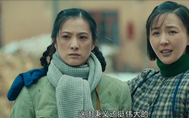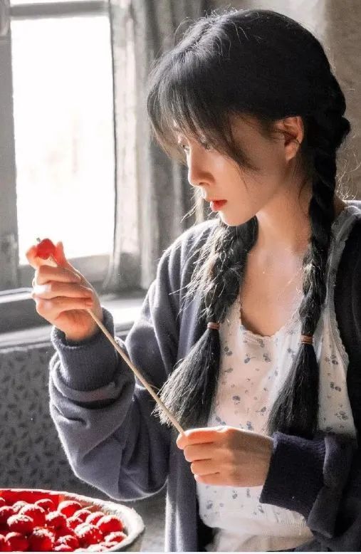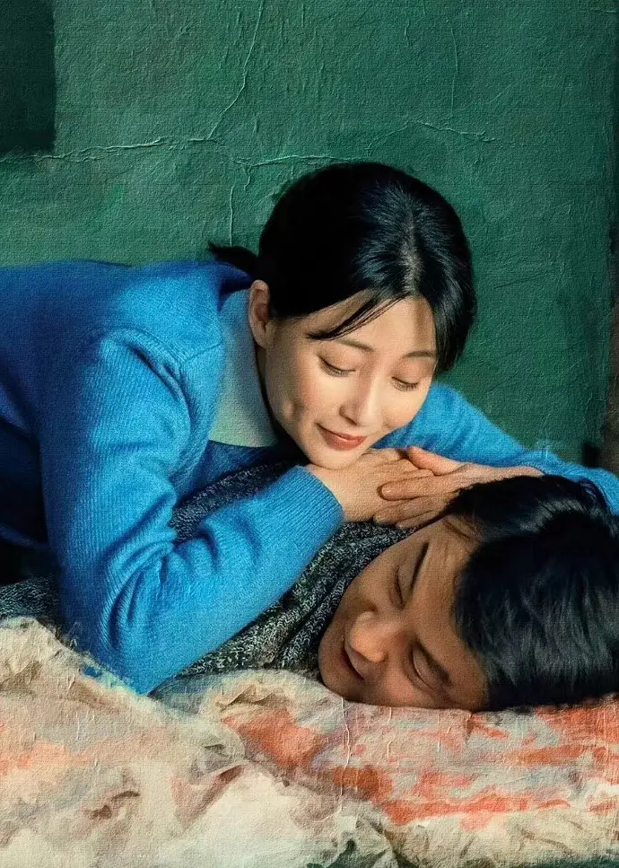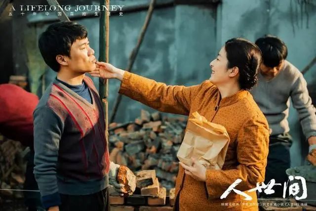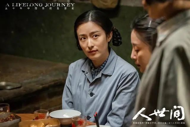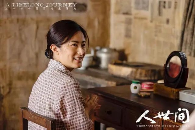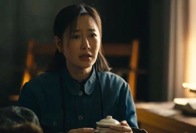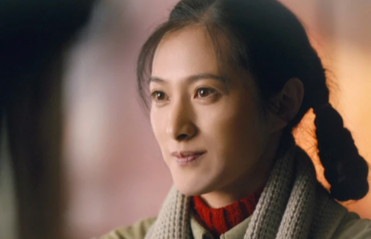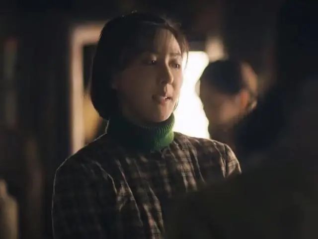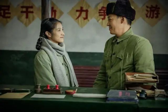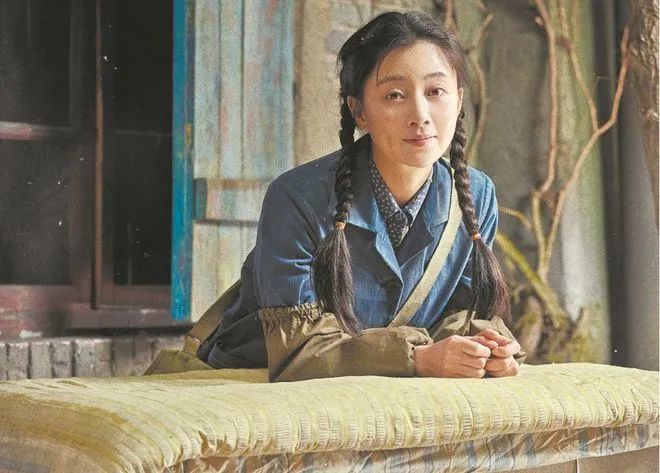 她一身朴素的蓝布衫加上极具时代特色的双马尾麻花辫,望向丈夫时羞涩腼腆又明亮的眼神,那个年代女子的质朴和纯真被拿捏得十分精准到位。