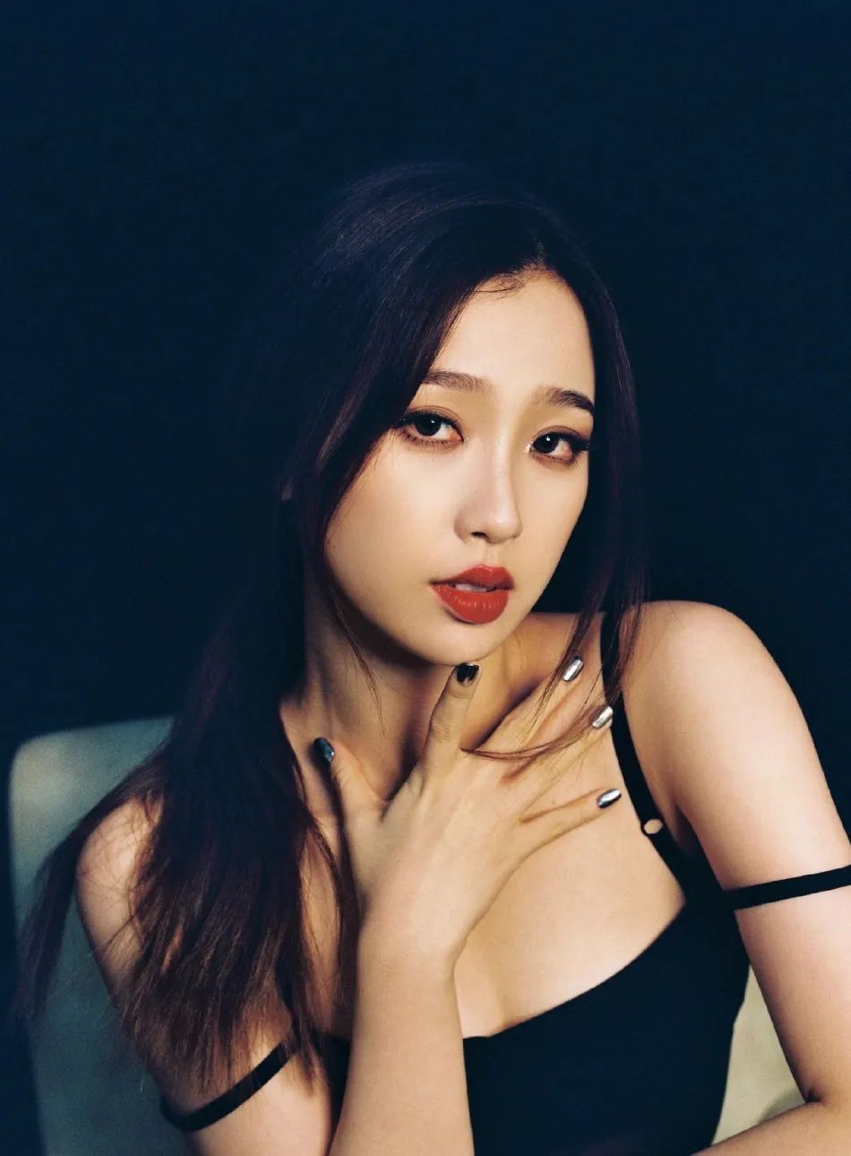 虞书欣身穿黑色吊带上衣,俏脸清丽,秀眸明亮,烈焰红唇,特意露出娇嫩的香肩,肌肤白皙如雪,曼妙的身材尽显无遗,绝对性感撩人。
