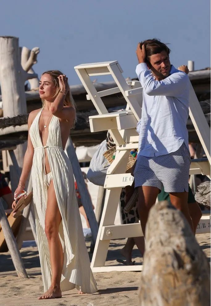金伯利·加纳身穿一袭裸背沙滩裙,她俏脸清丽,秀眸明亮,金色长发飘逸,大长腿修长,这位美女站在自己的帅哥男友身边,特意大秀自己的魔鬼身材,绝对性感火辣。