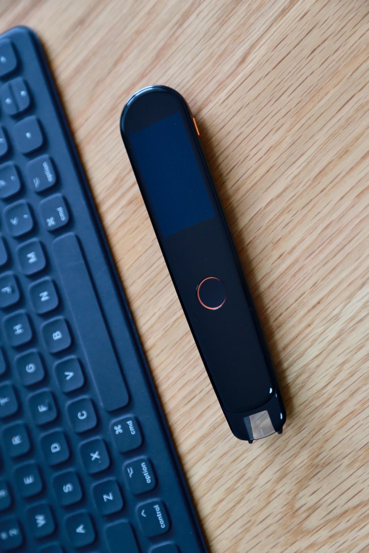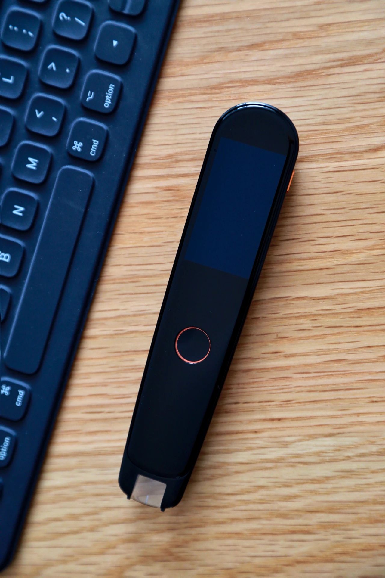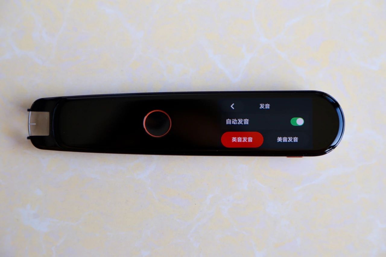 词典笔机身正面有一层印字的透明磨砂薄膜,让人第一次使用就能快速直观的了解这款产品。