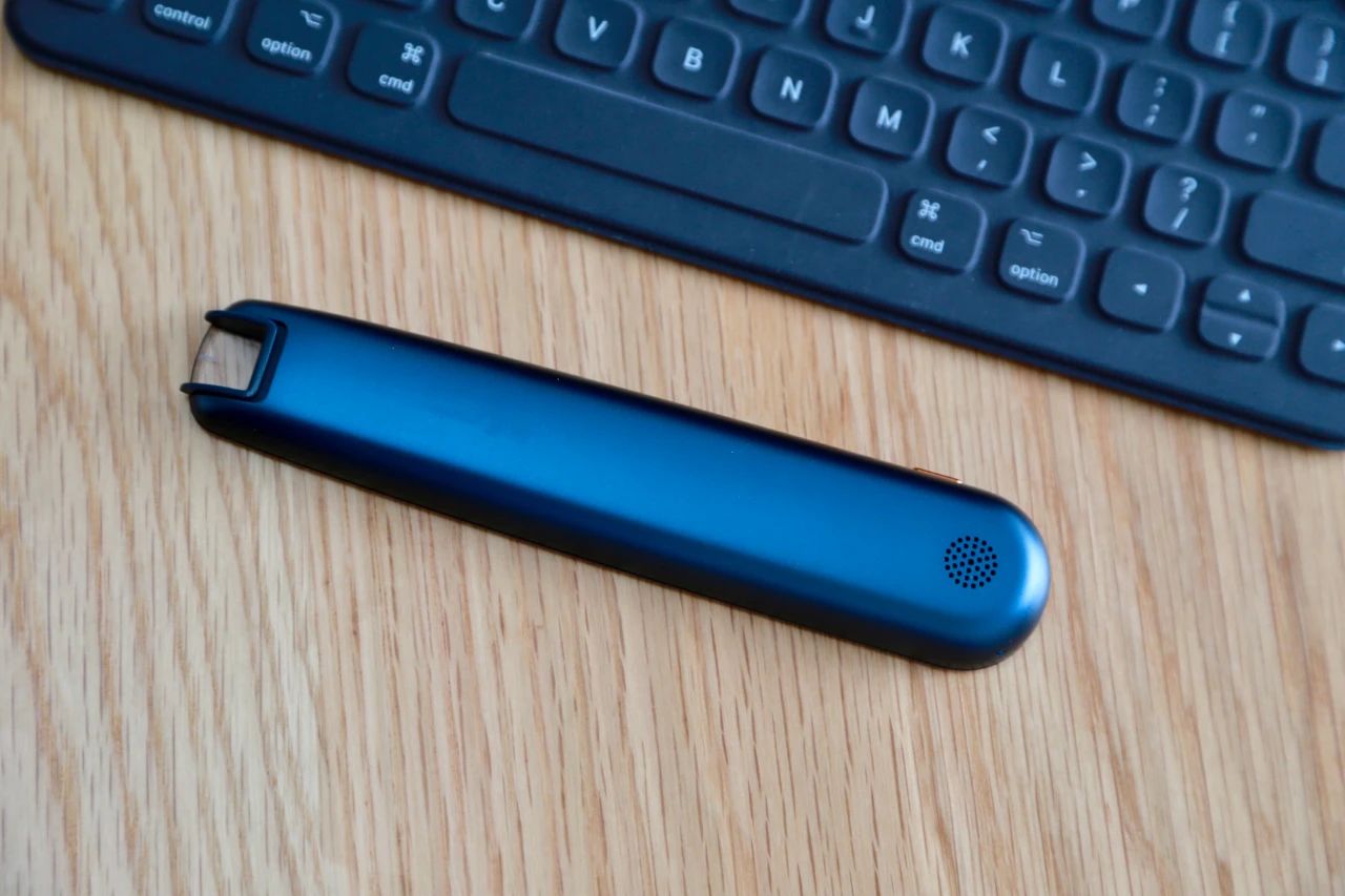 翻译笔的背面是全金属后壳,大气深沉的深湖蓝,喜欢磨砂质感的设计,不会留下难看的指纹印,手握住时的触感也很舒适。