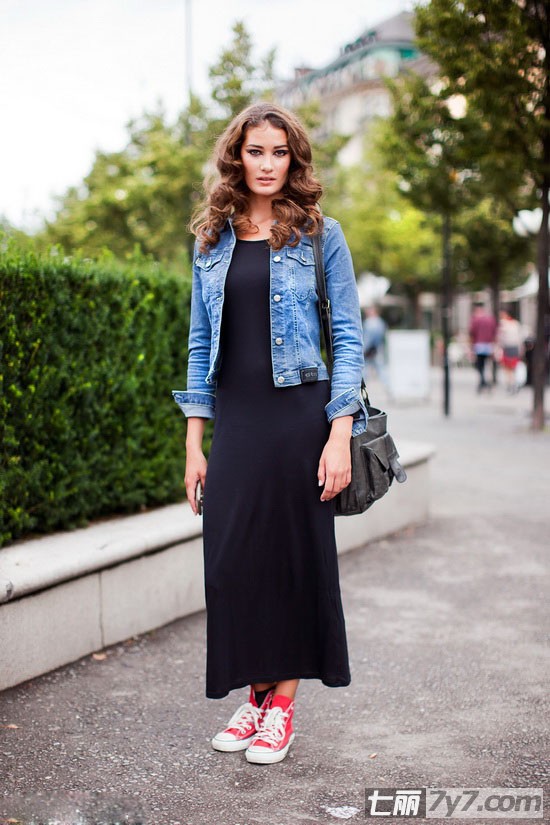 同样是一身基础款~ 牛仔外套、小黑裙、还有前两年的咱必须有的基础款匡威板鞋。也是潮爆不是?