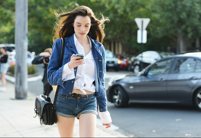 下面这一身就是完全的是基础款啊~ 基础款的白衬衫、基础款的牛仔短裤 牛仔外套~~ 但是潮爆!