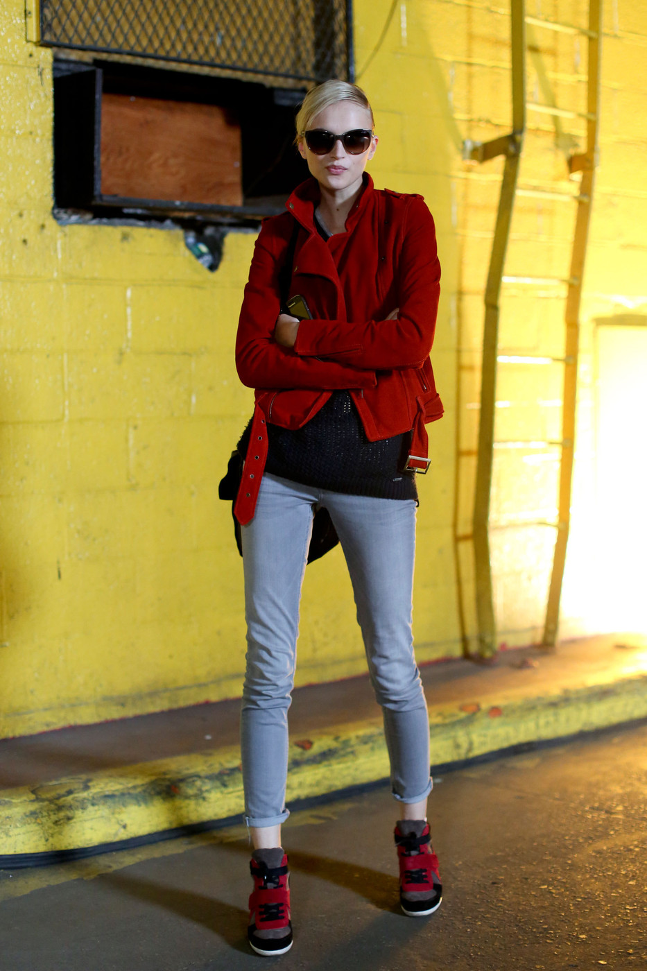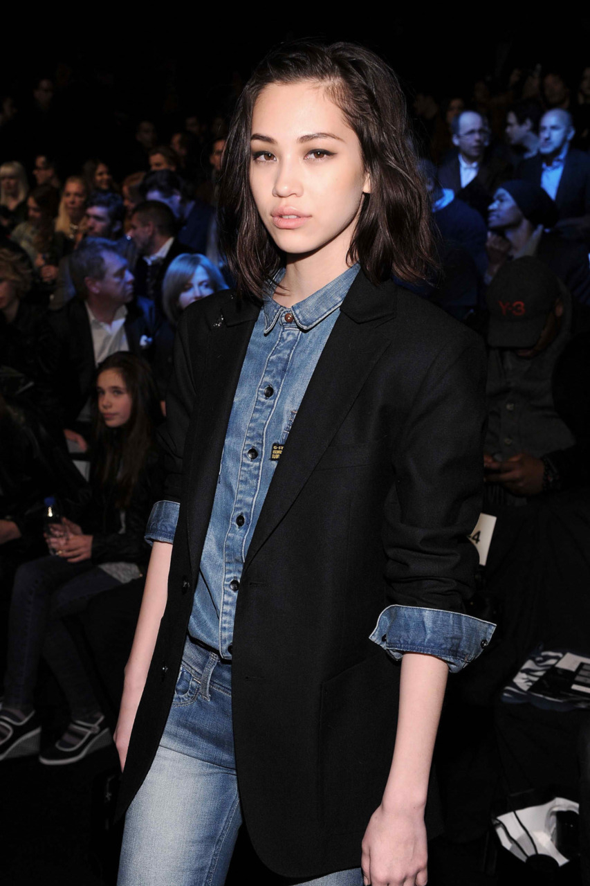 同是全身基础款的水原希子可是看秀装备哦~ 基础款的牛仔衬衫、牛仔裤、还有基础款的黑色小西装~