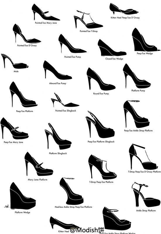这一辑我们专门来写高跟单鞋,春天就要来了,也到了穿单鞋的时间,这辑咱们就来简单的说说高跟单鞋们。首先一张图,亲们先大概了解一下常见的高跟鞋吧~好吧,我先承认我对鞋子也是如醉如痴,下面每双都想要一双嘞。