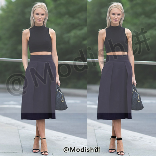 当然如果你有一条纤细匀称的腿这些法则基本可以只用来参考哦,你需要更多的是参考服装的整体搭配效果咯。但小腿略粗的亲们却应该记下来备用。平跟中跟后面再说咯,但是很多法则是相通滴~