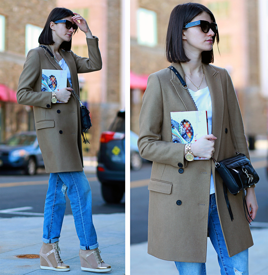 上面这一身又是个反面教材,直筒裤搭配一样粗的坡跟sneakers,没有对比缺乏美感额~