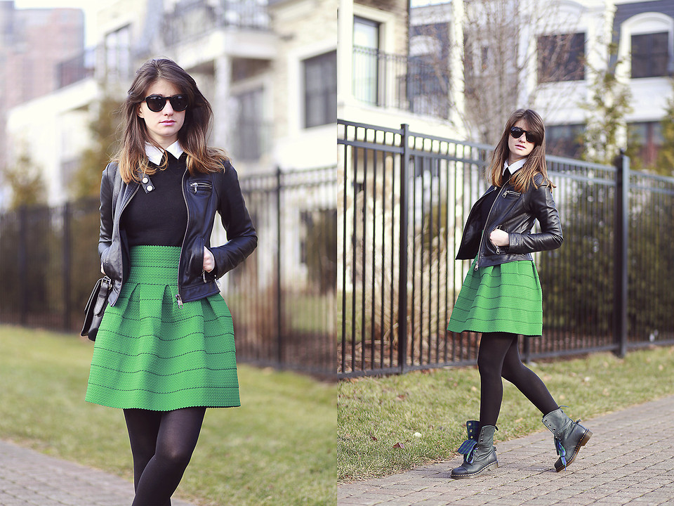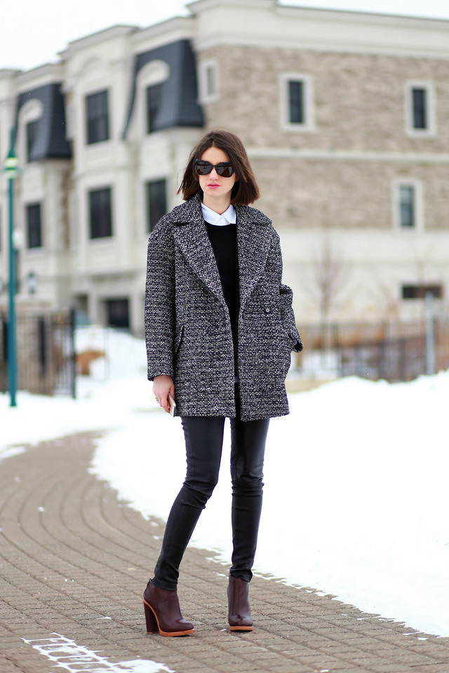 Tatiana Salia同一件皮衣的不同搭法,上面一身搭配休闲大气儿下面一身搭配的那双短靴不得不让大饼吐槽。