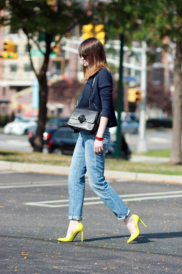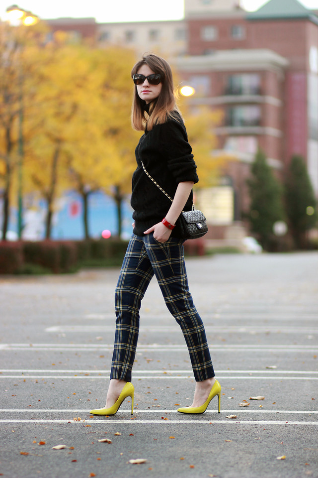 看下图一身,黄鞋的点亮效果绝佳。我越来越爱这黄色尖头~大饼要继续去刨坑去,嫩黄或者珠光黄快到我的碗里来。