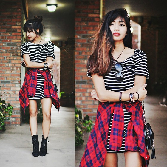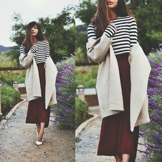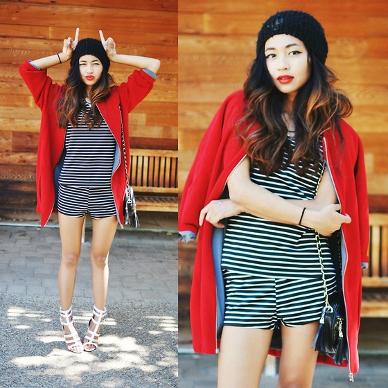 黑皮肤的mm 大红一样驾驭的娇俏,搭配一身条纹俏皮又不失女人味。