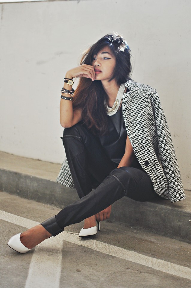 很多皮肤黑的mm总是说忌白色,显得更黑,但是Heliely却把黑白穿的极好,总是采用简洁的黑白配然后点缀一个色彩的手包做亮点哦~关于颜色咱后面大篇幅看起啦:
