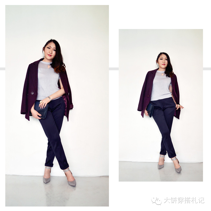 前面刚说过小西装是职业感的最好体现,所以正式点的场合就得靠它上阵了酒红和藏蓝都是稳重的职场颜色,搭一组有点气场范儿的~