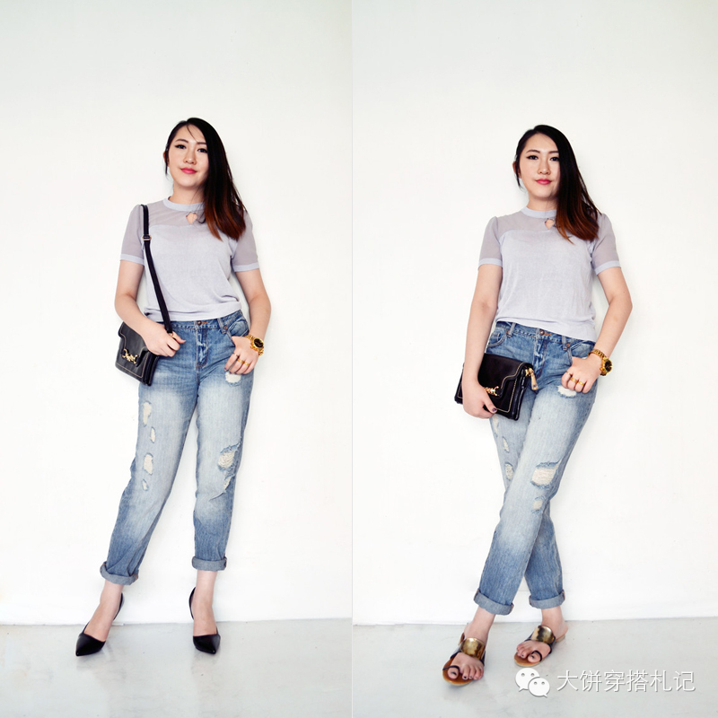 换了双鞋,这一组图叫做论鞋子对整体造型的重要性,鞋子不同给人的感觉完全不同。一样的衣服,一样的某饼然后同一个包2ways, match了不同场合风格的鞋子。高跟单鞋更professional,凉拖更清凉休闲。